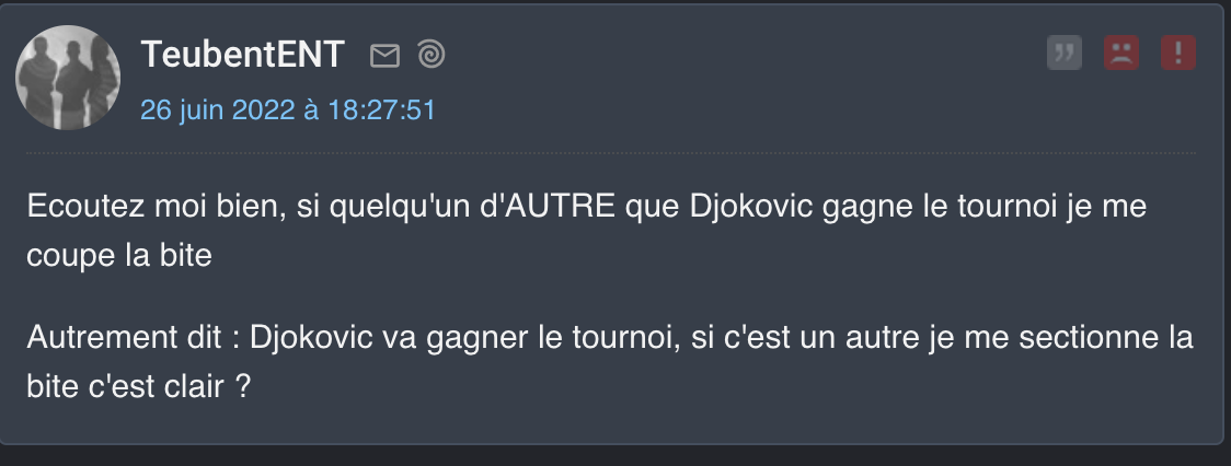 le problème c'est qu'entre les covidés ,les russes interdit ,zverev blessé et les outsider éliminés au 1er tour .