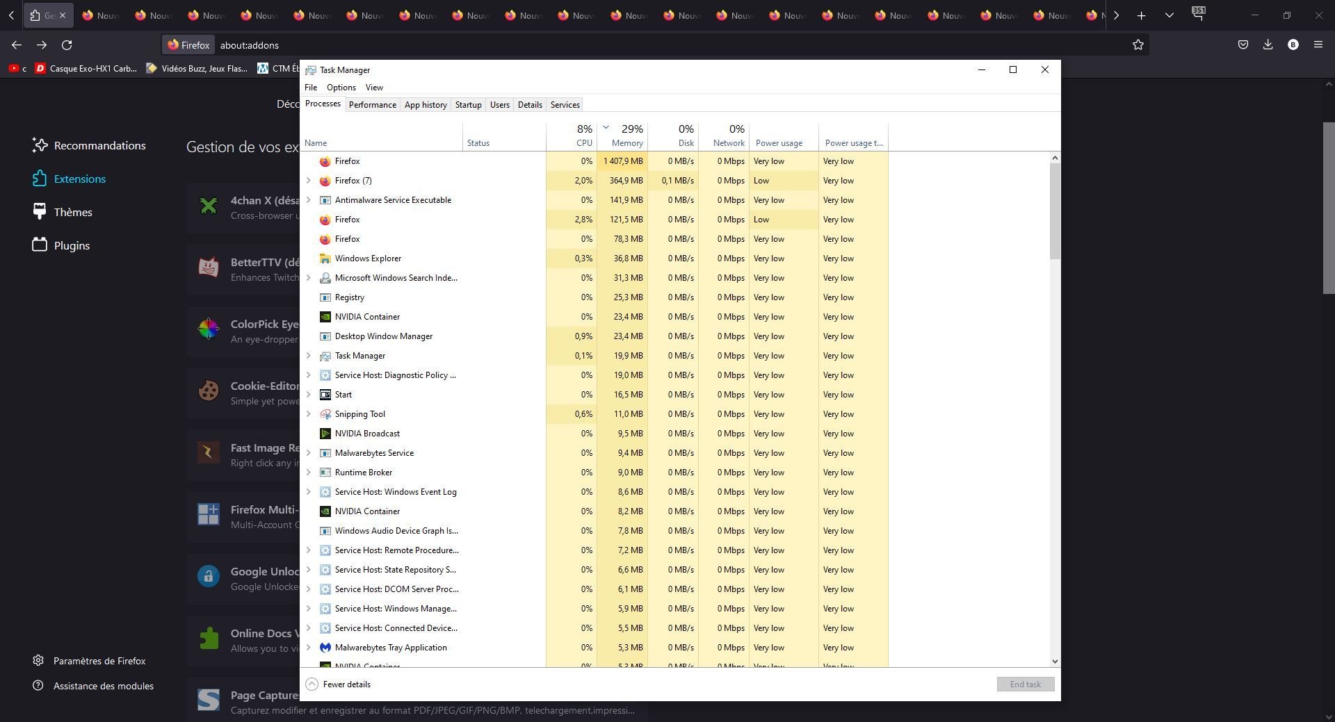 Firefox consomme peu même avec 100 onglets d'ouvert, tu peux pas dire la même de Chrome en revanche