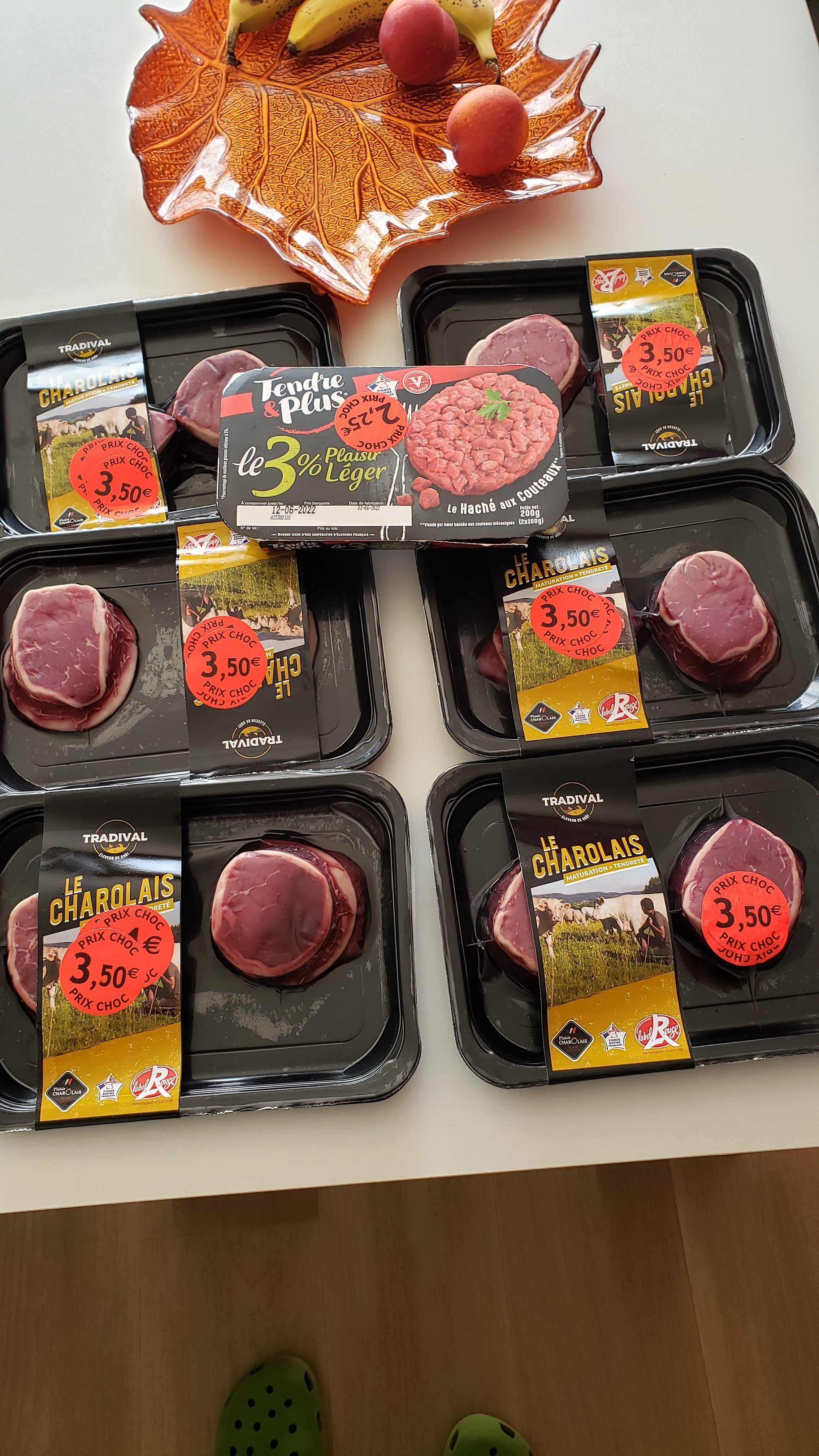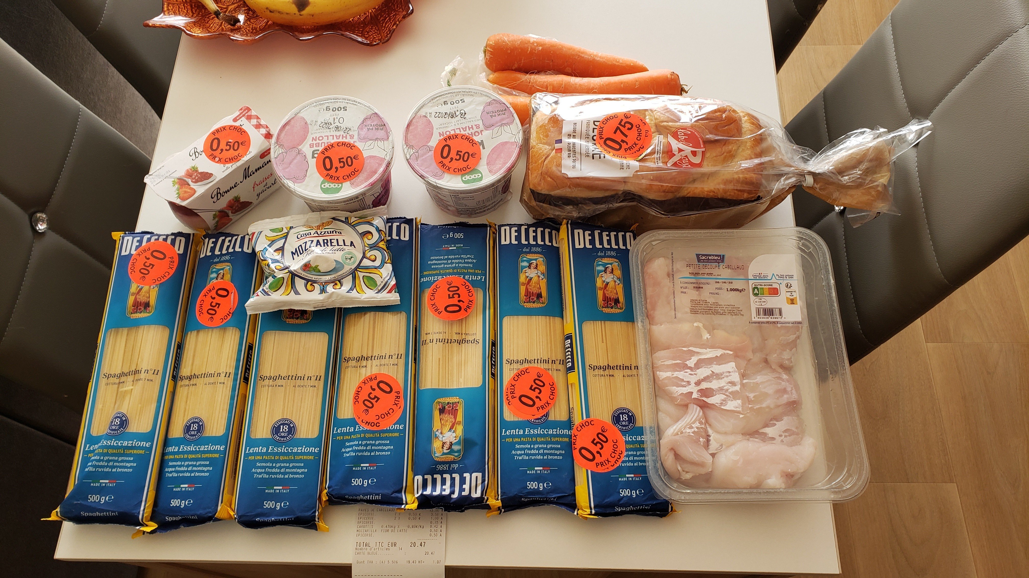 Par contre le poisson y'en a que pour 4 repas quoi, en 2 jours tu retournes aux courses