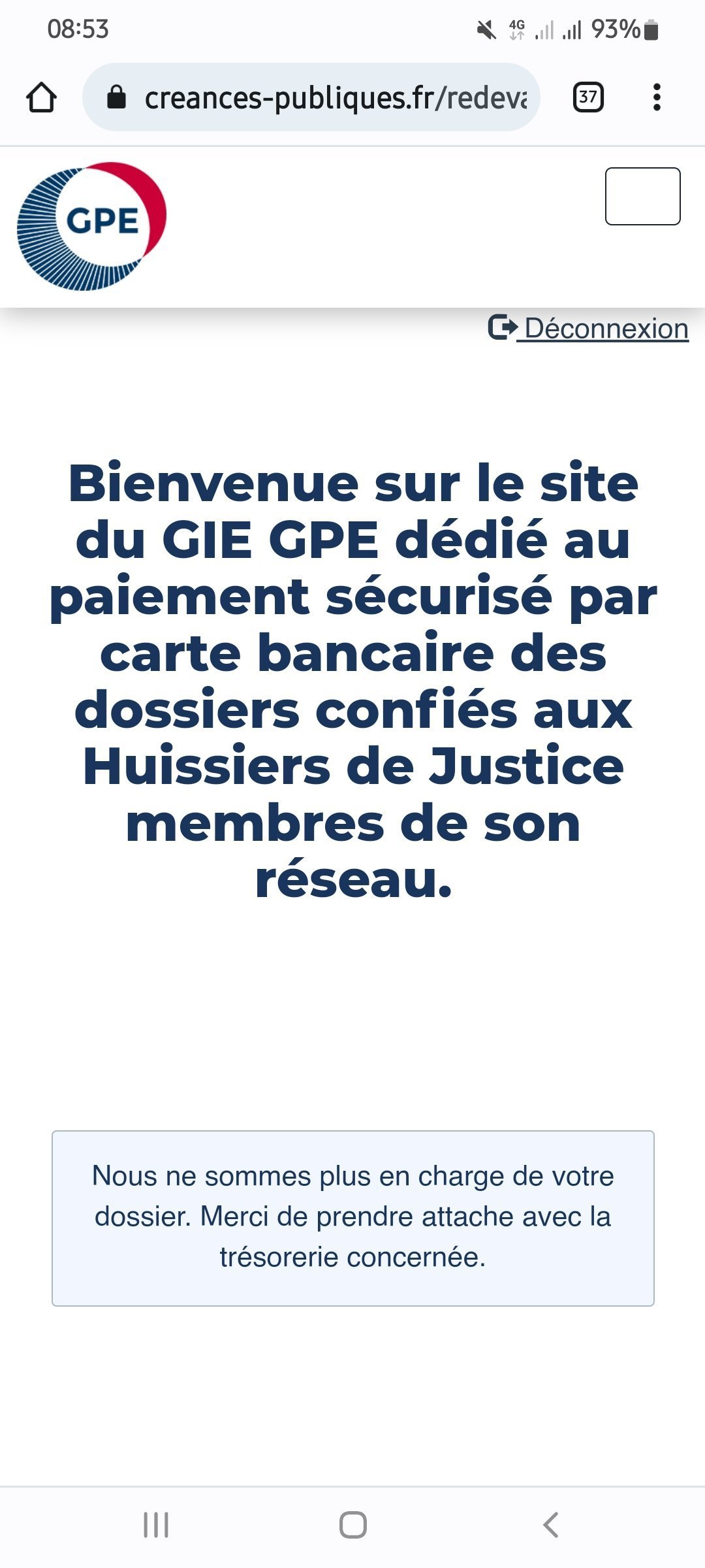 Je me connecte sur le site des créances et il y a marqué "Nous ne sommes plus en charge de votre dossier. Merci de prendre attache avec la trésorerie concernée".