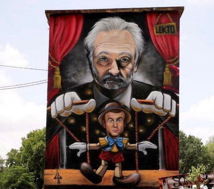 Le 30 juin 2022 à 19:19:26 : C'est parce que cette fresque imite d'autres dessins qui eux étaient explicitement antisémites (avec des personnes juives tirant les ficelles). Le dessinateur a juste été trop lâche et n'est pas allé au bout de son antisémitisme.
