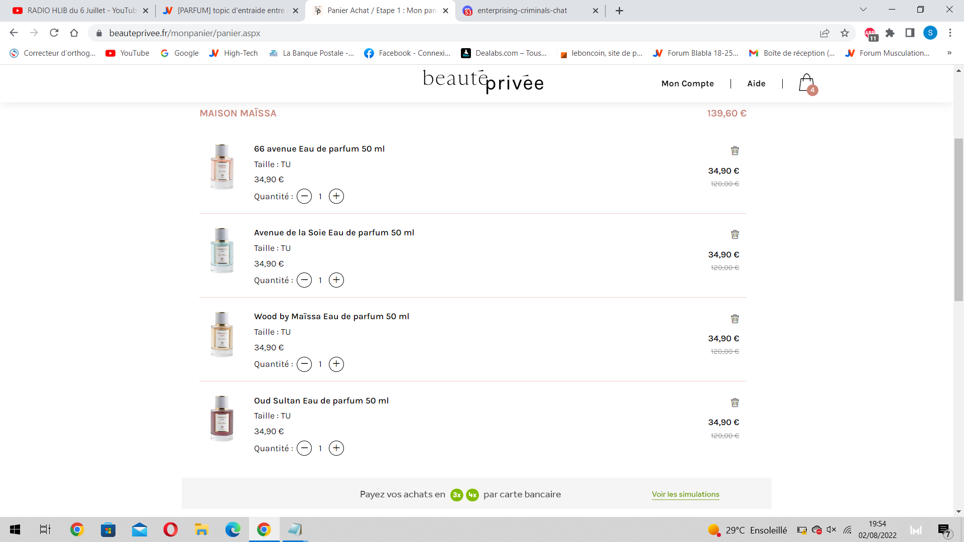A tous les kheys et particulièrement l'op, je sais que tu kiffes cette maison : les parfums Maïssa sont à -70% sur beauté privée jusqu'au 8 août, moins de 50e les 100ml, foncezMerci beaucoup mon clé tu régal