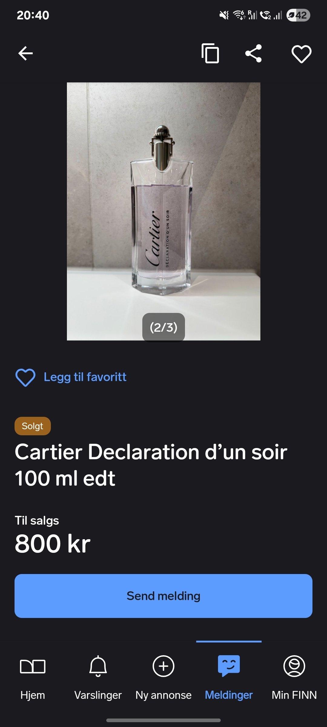 Je poste pas beaucoup ici mais je souhaitais juste partager mon bonheur d'avoir trouvé enfin un flacon de Déclaration d'un soir de Cartier ENFIN trouvé à un prix raisonnable d'occasion