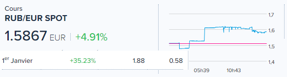 C'est historoque, grâce à la commission européeenne, nous payons notre énergie +20% par rapport au dollars, et juste le change, SANS compter le reste des hausse.Merci. Poutine va arrêter la guerre grâce à nous