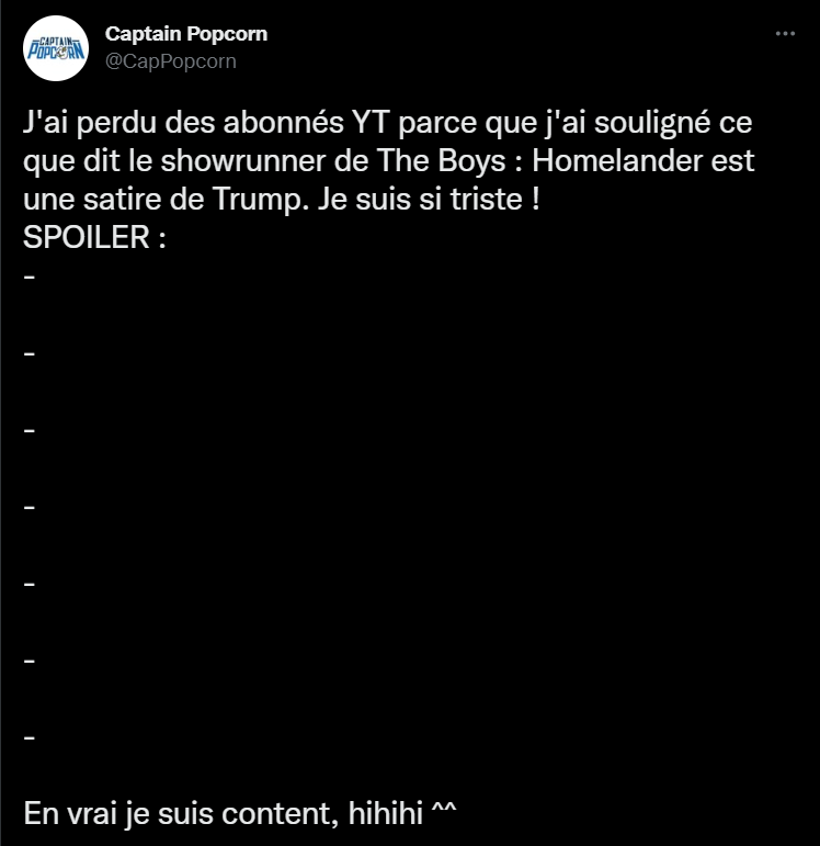 il a tellement raison Homelander est tellement méchant comme Trump, faut avoir du courage pour dire haut et fort que ce les gens pensent tout bas
