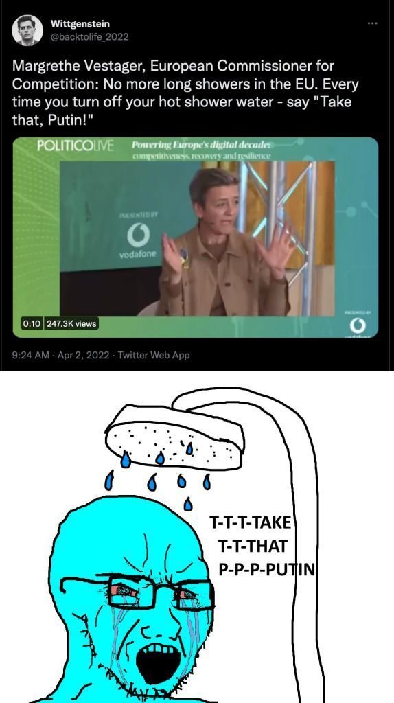 Tu fais sûrement parti des personnes fières de devoir payer ton gaz / électricité / essence plus cher tant que ça peut faire chier Poutine non ?