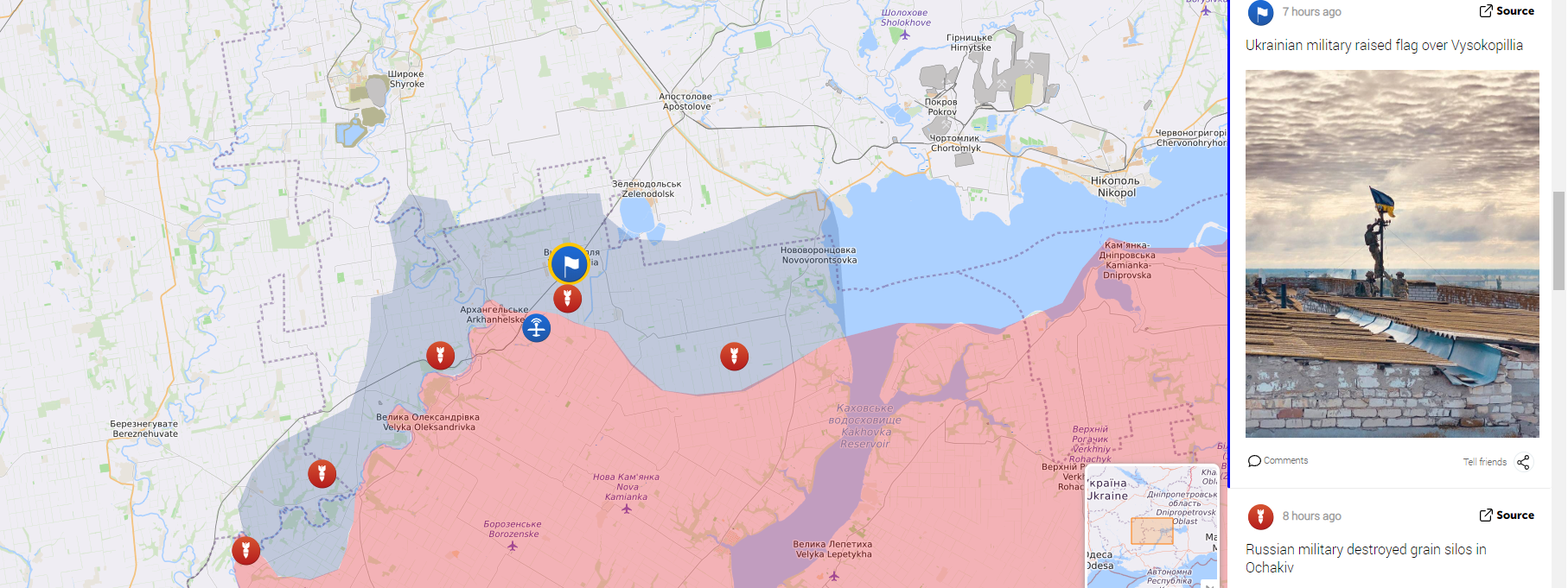Les seuls combats résiduels sont au nord au niveau de Vysokopillya ou un village est contesté.