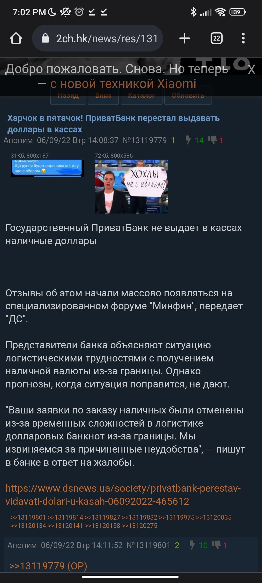 https://www.noelshack.com/2022-36-2-1662480190-screenshot-2022-09-06-19-02-33-133-com-android-chrome.jpgLa privatbank n'a plus de dollars, les reserves sont asséchées. Impossibilité pour le particulier de récupérer des devises étrangères