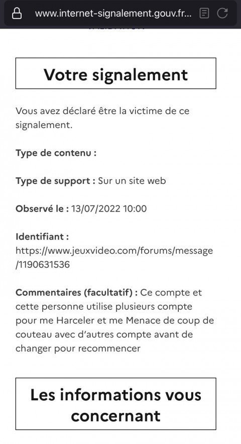 Certains ont reçu la visite de de Gilbert ou eu un courrier pour moins que ça, je serai pas étonné que ce soit vraiJe viens de refaire un signal gouv pour que ça se rajoute à la plainte, conseil de la gendarmerie