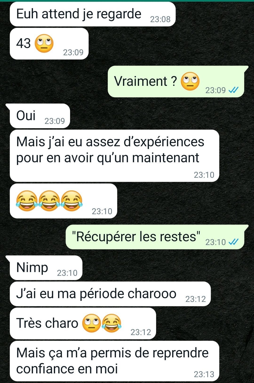 43 mecs depuis le début de sa vie sexuelle. (18 ans, 'fin c'est c'qu'elle dit