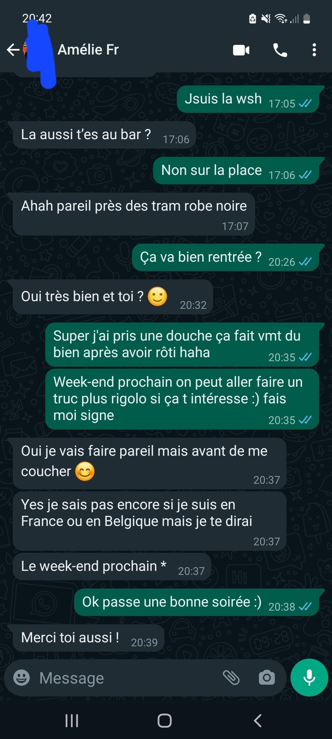 Enfin c'est toi qui demande si elle est bien rentre alors que sa aurais du venir de elleMouais. On verra i guess