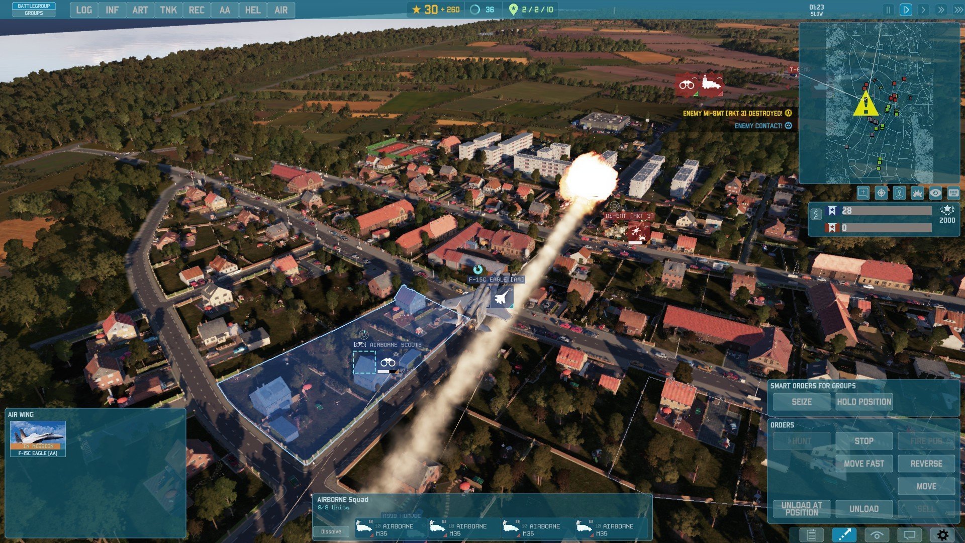 Un groupe d'éclaireurs qui s'est fait repérer par deux MI-8, un F-15 vient à la rescousse