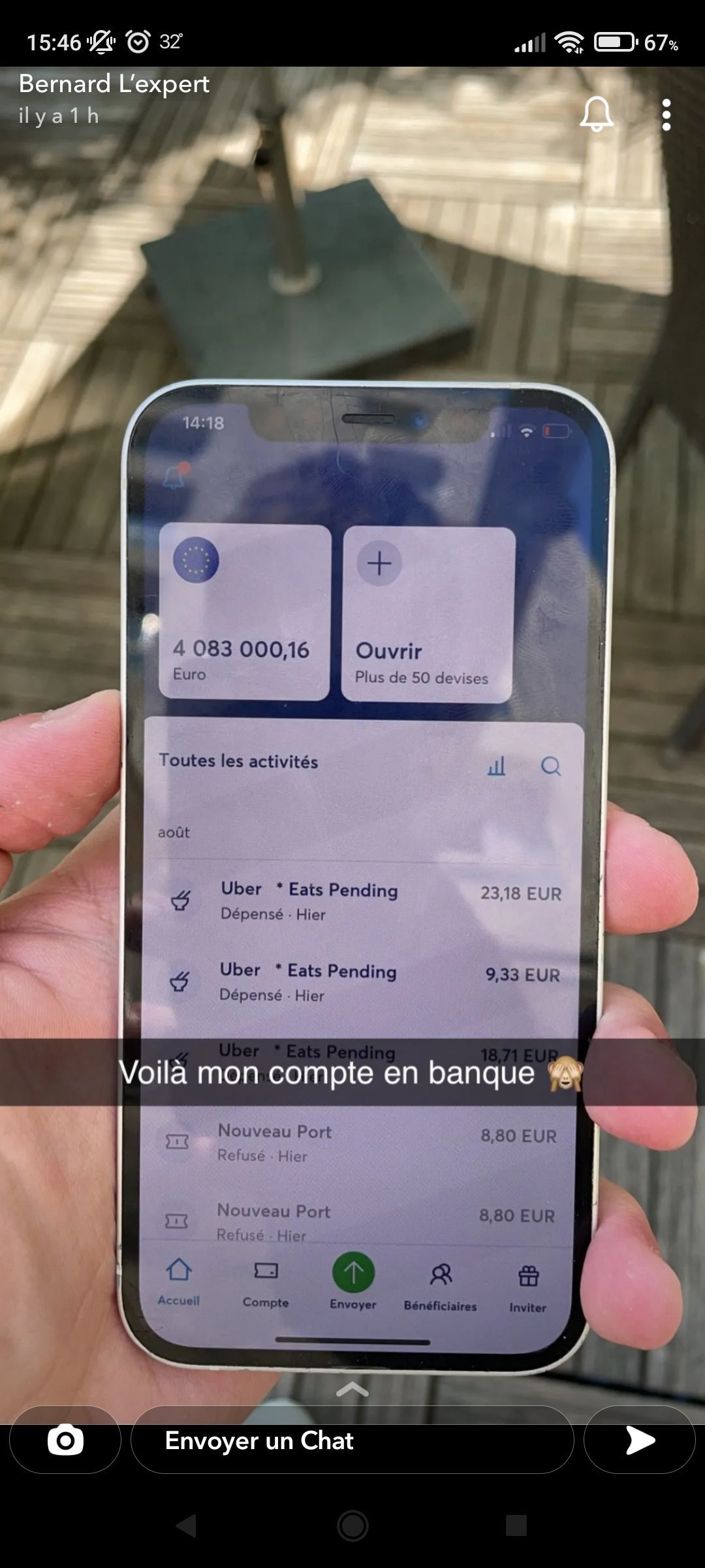 Des millions d'euros sur Wise, mais commande des Uber Eats à 20 balles