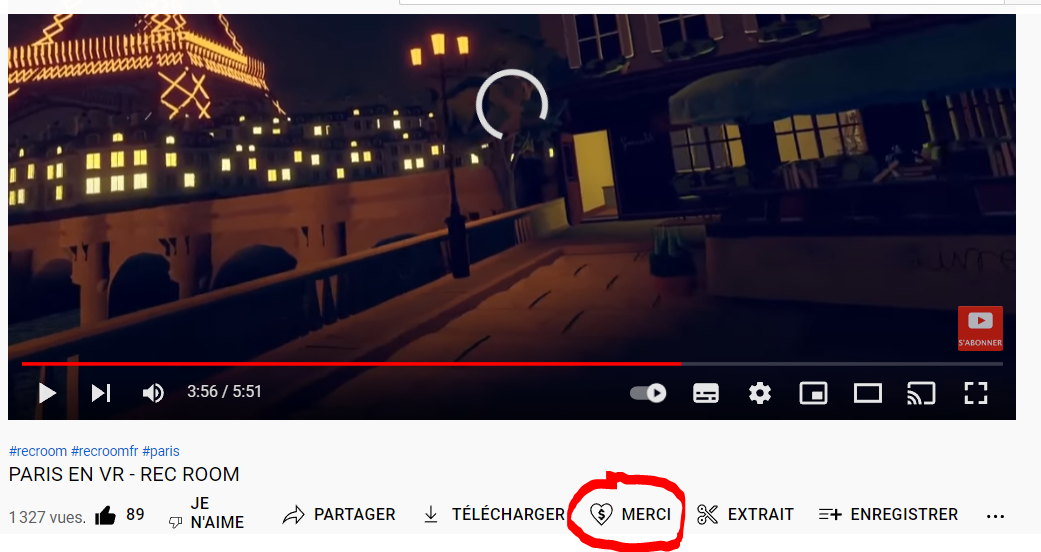 ensuite les donation que tu peux faire en cliaquant sous le bouton "merci" sous chaque vidéo
