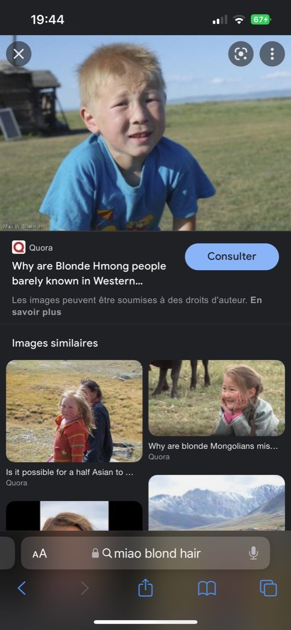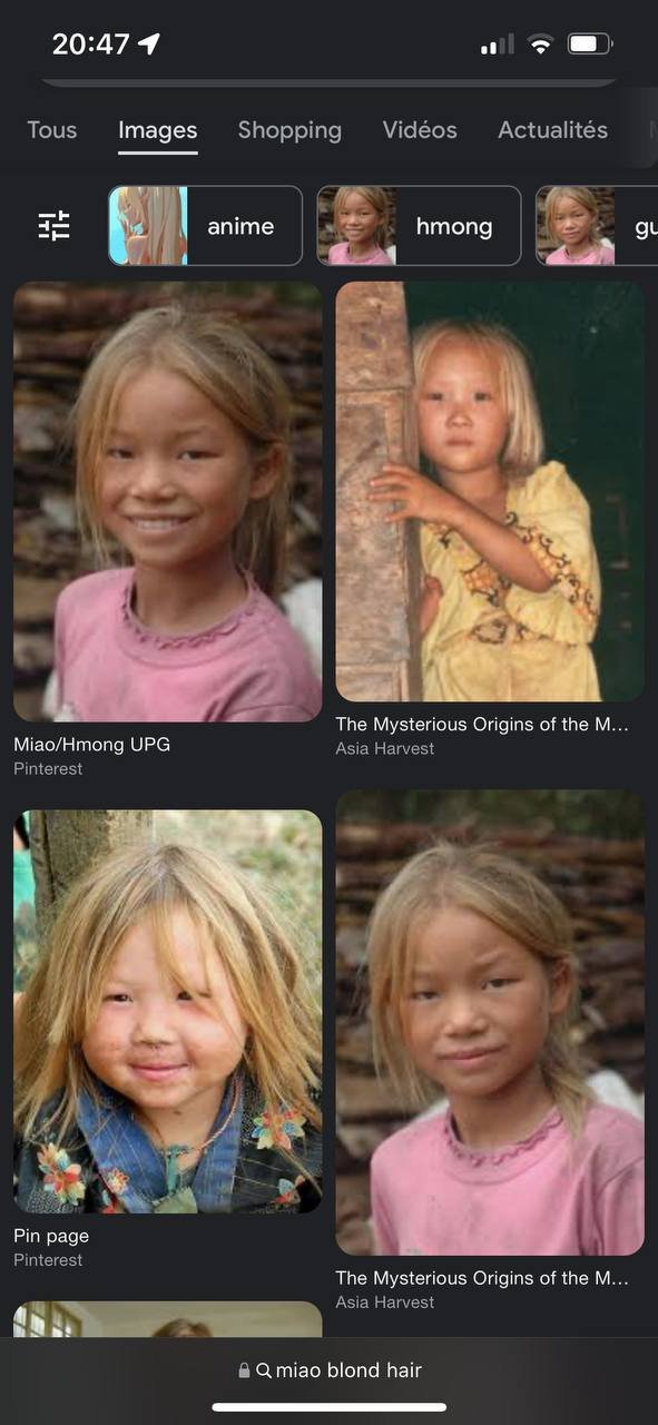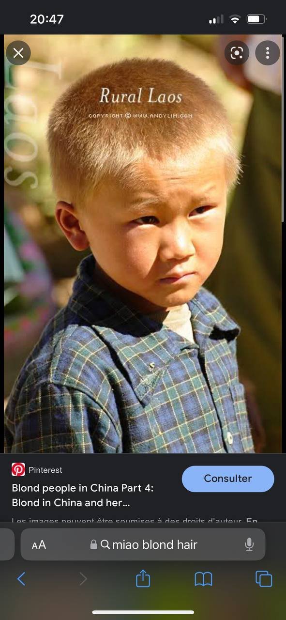 Donc historiquement, les Miao ne sont pas asiatiques, d’ailleurs il y en a pas mal qui ont les cheveux jaunes et yeux claire, en fait un peu comme pour les ouïgours, les chinois ont tué les hommes et abuser des femmes, voilà pourquoi maintenant on ressemble à des asiatiques.