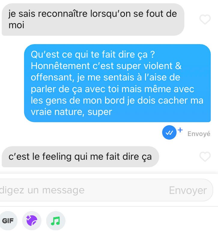 Unmatch moi ça et go parler à des 8/10 qui ne sont pas taréesents