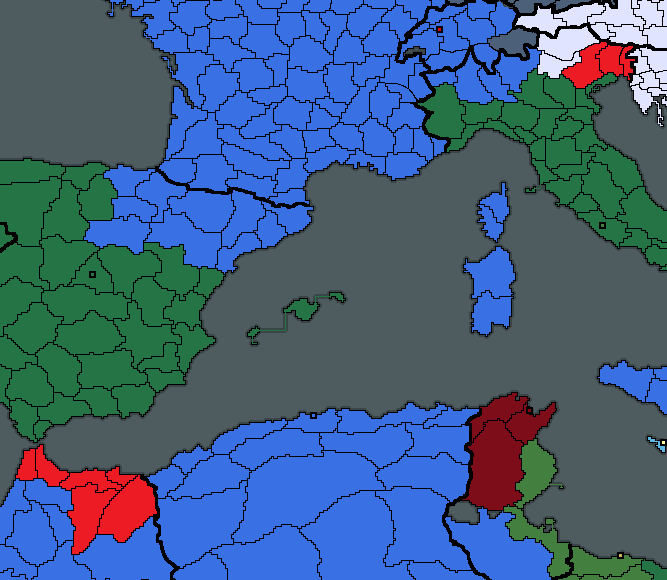 Peux-tu donner les possessions austro-hongroises au Maroc à la France (en rouge en bas à gauche), et donner les possessions françaises en Italie au Portugal (en rouge en haut à droite) ?