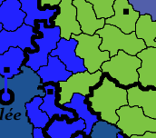 le califat (belge) continue son annexion de Séville (vert, sud de l'Espagne).