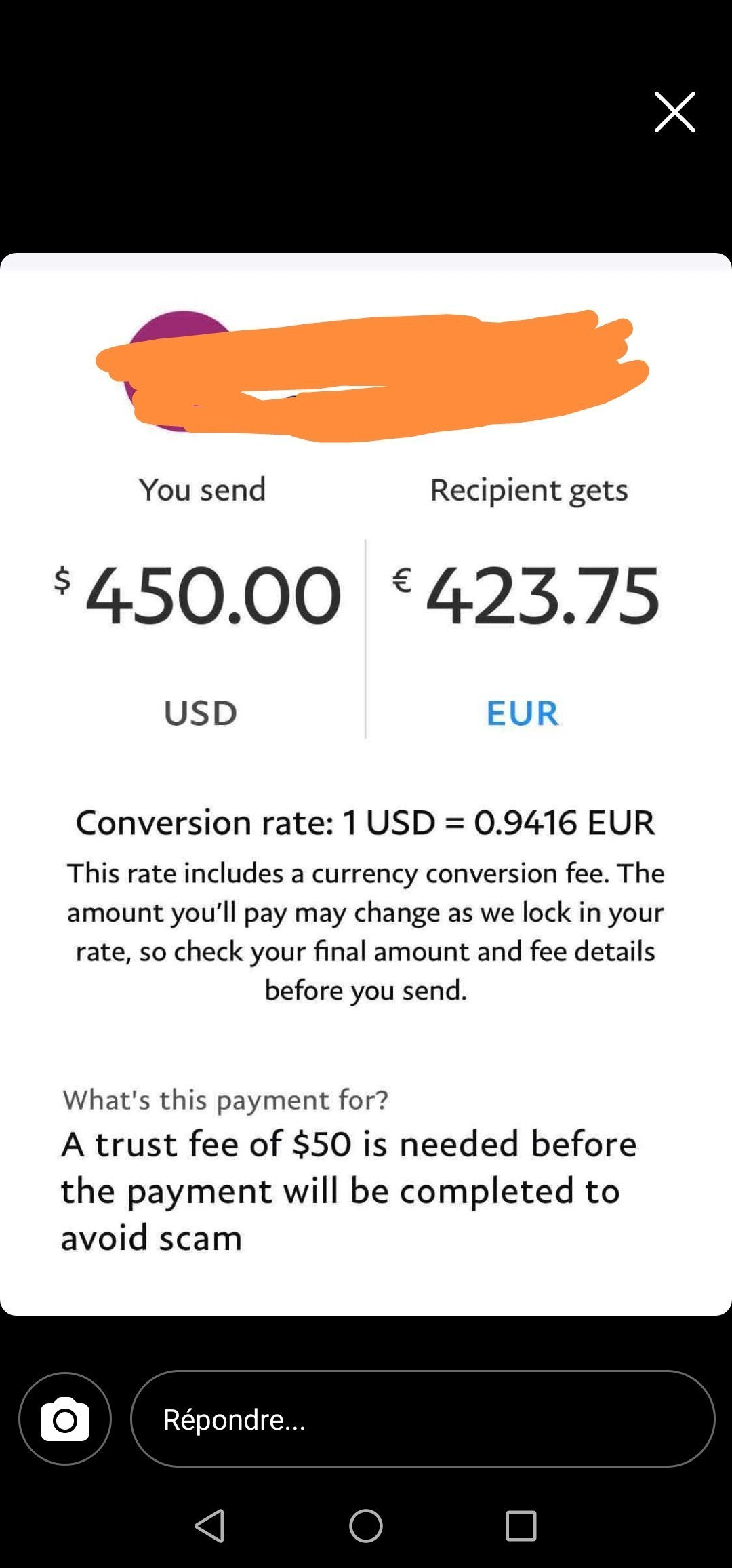 On me dit d'envoyer $50 pour débloquer son payement, un "trust fee"