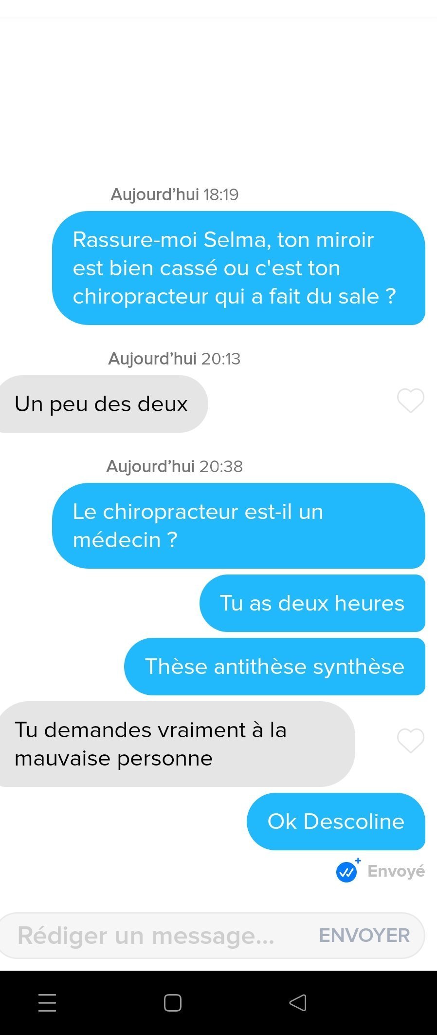 Gg l'OP ça me donne envie de réinstaller Tinder