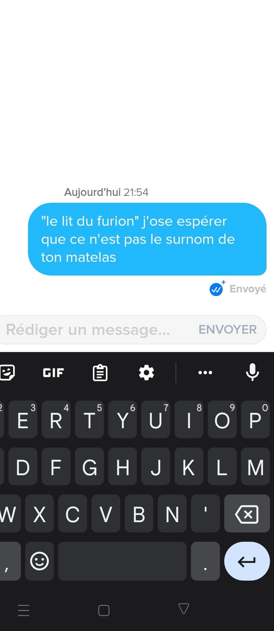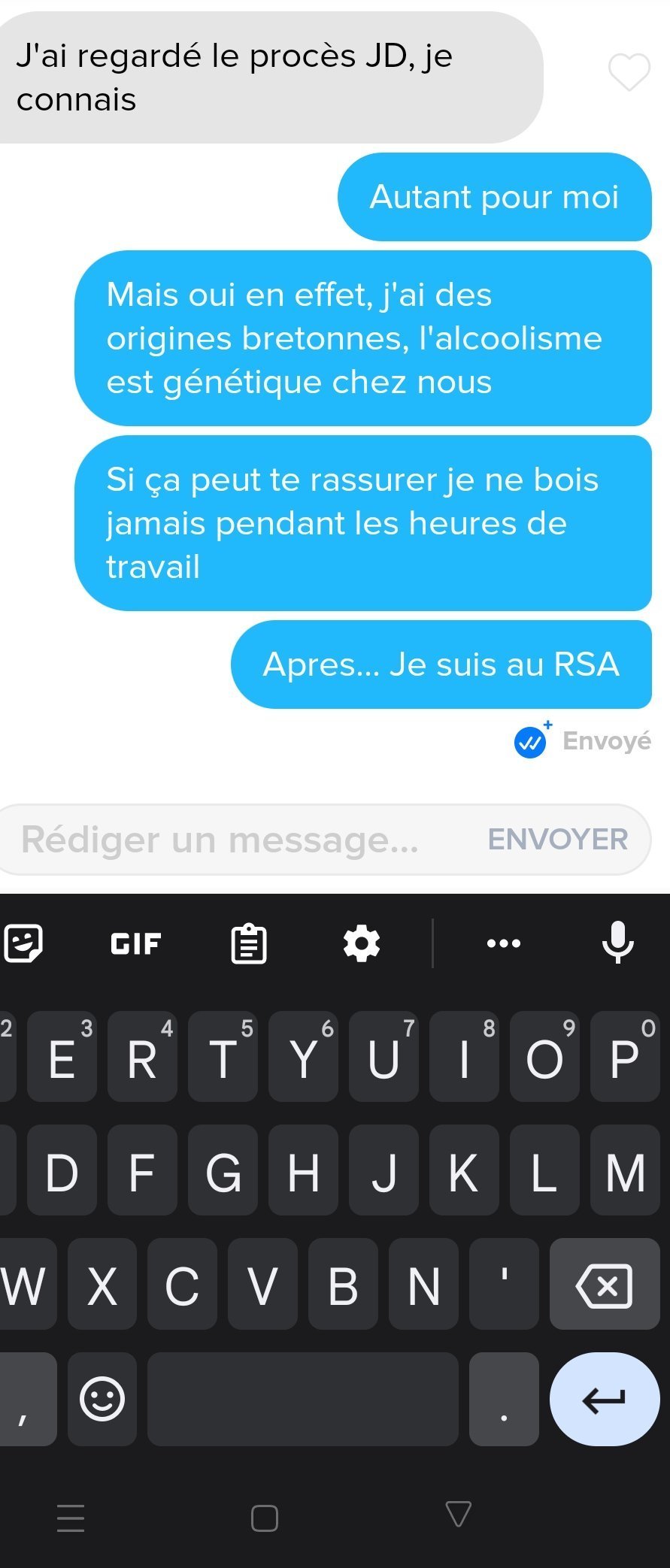 Le 01 septembre 2022 à 23:08:31 : Je me suis fait largué ya 2 semaines mais j'ai vraiment pas envie de retourner dans la boucle tinder. Surtout qu'en plus je bide contrairement à toi