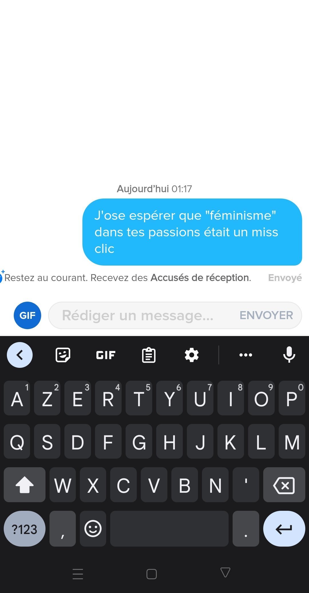 Désolé mon gars mais ça m'étonnerai que en face de la personne tu t'exprimes comme dans les postes que tas publiéC'est donc hyper malaisant