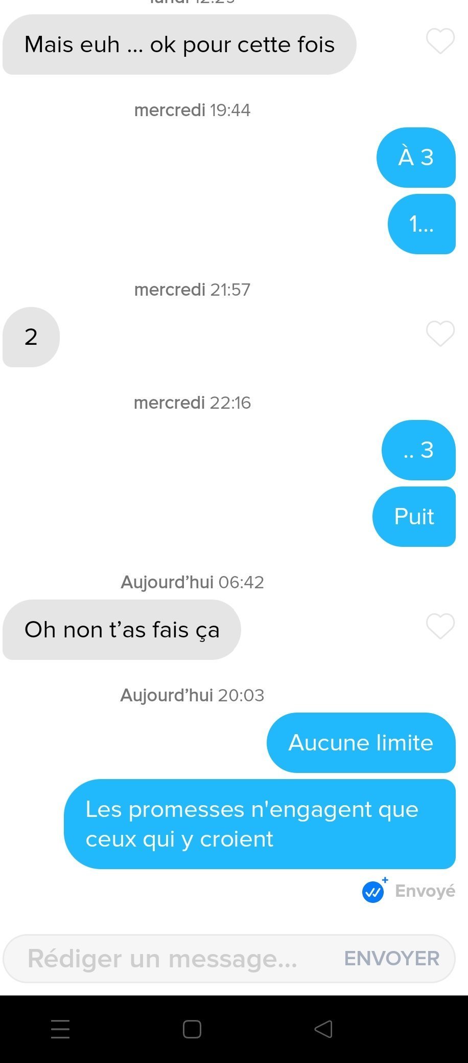 Dis moi outre les photos que tu as pu mettre, t’as mis quoi comme type de bio pour qu’elles tombent dans ce piège savamment orchestré ??