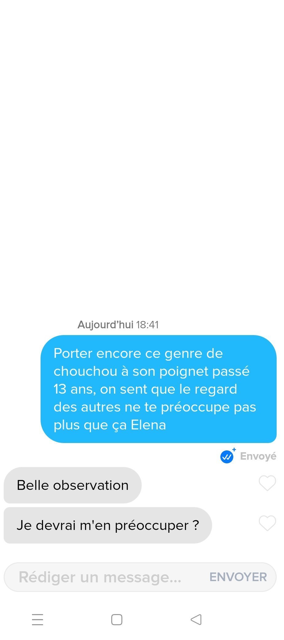 J'ai commencé par "J'imagine que tes journées sont bien remplies" et elle m'a unmatch