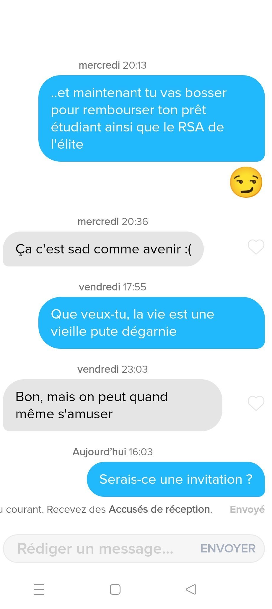Le 24 septembre 2022 à 20:27:03 :L'op t'as moins de match en ce moment ? J'attend la suite hop hop hop