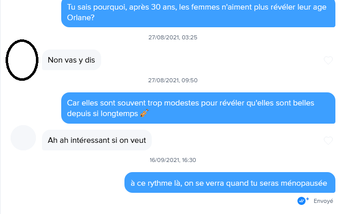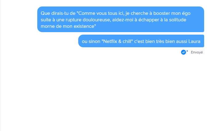 Mais bref je te mets son profil si ça te dis de jouer le jeu tu me donnes les messages que je dois lui envoyer et je t'envoie ses (éventuelles) réponses