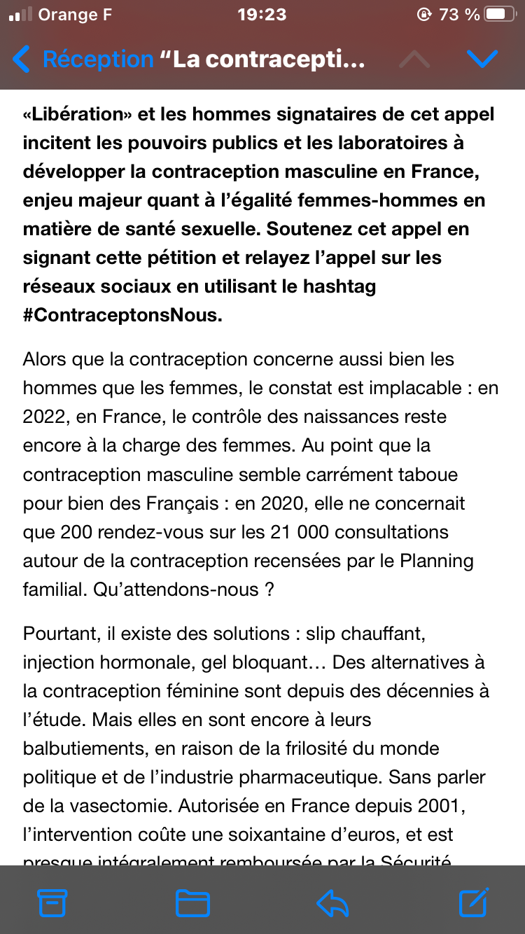 Le 23 août 2022 à 19:45:55 :Contraception masculine ?