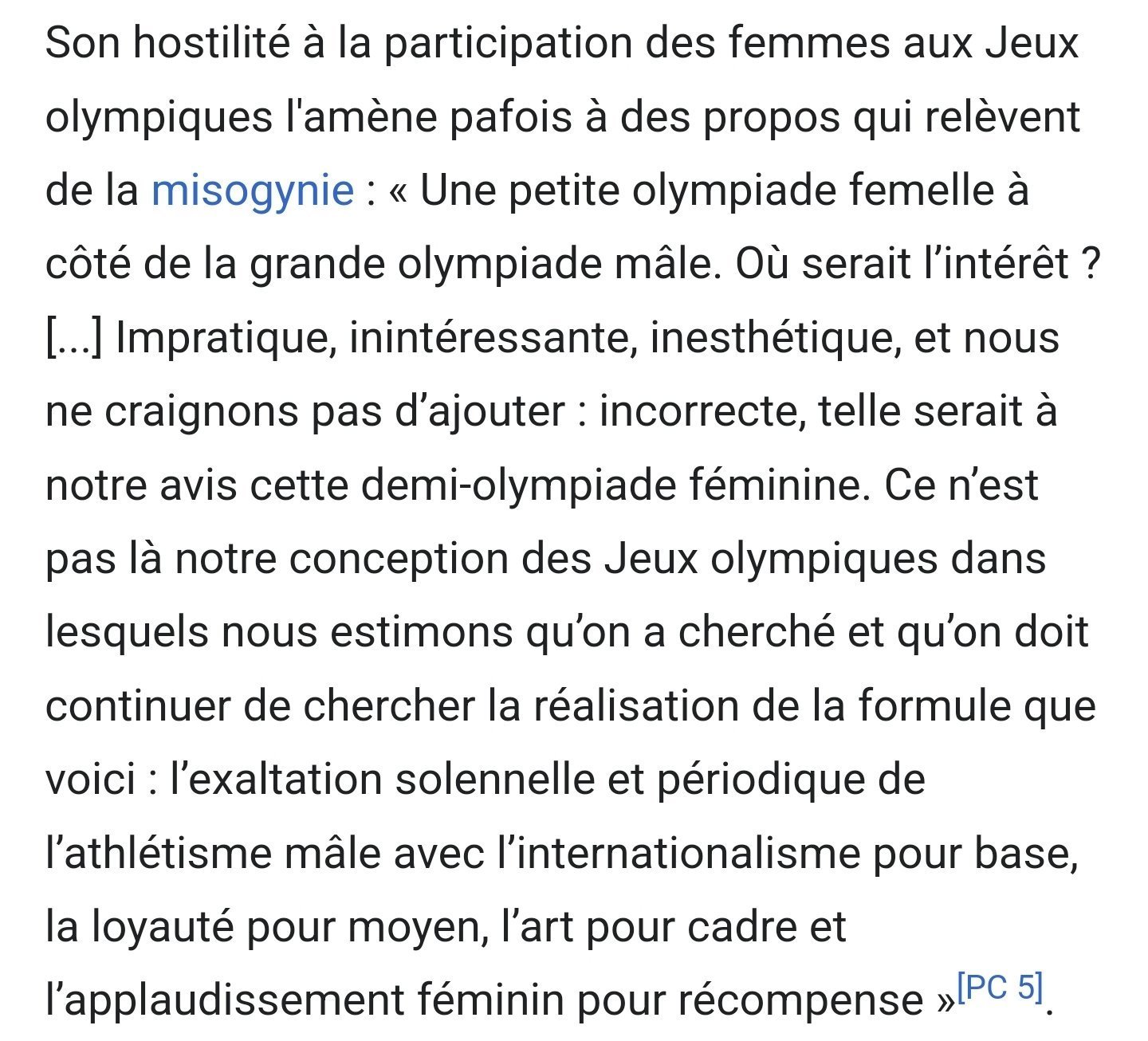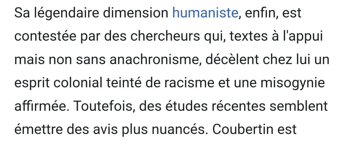 Le 28 août 2022 à 11:39:12 :Le 28 août 2022 à 11:36:48 :Interprétation du Comité Olympique aujourd'hui Interprétation par son créateur lui-même Sacré Coubertin C'est pas très coubertin ça, monsieur Coubertin L'important c'est de participer