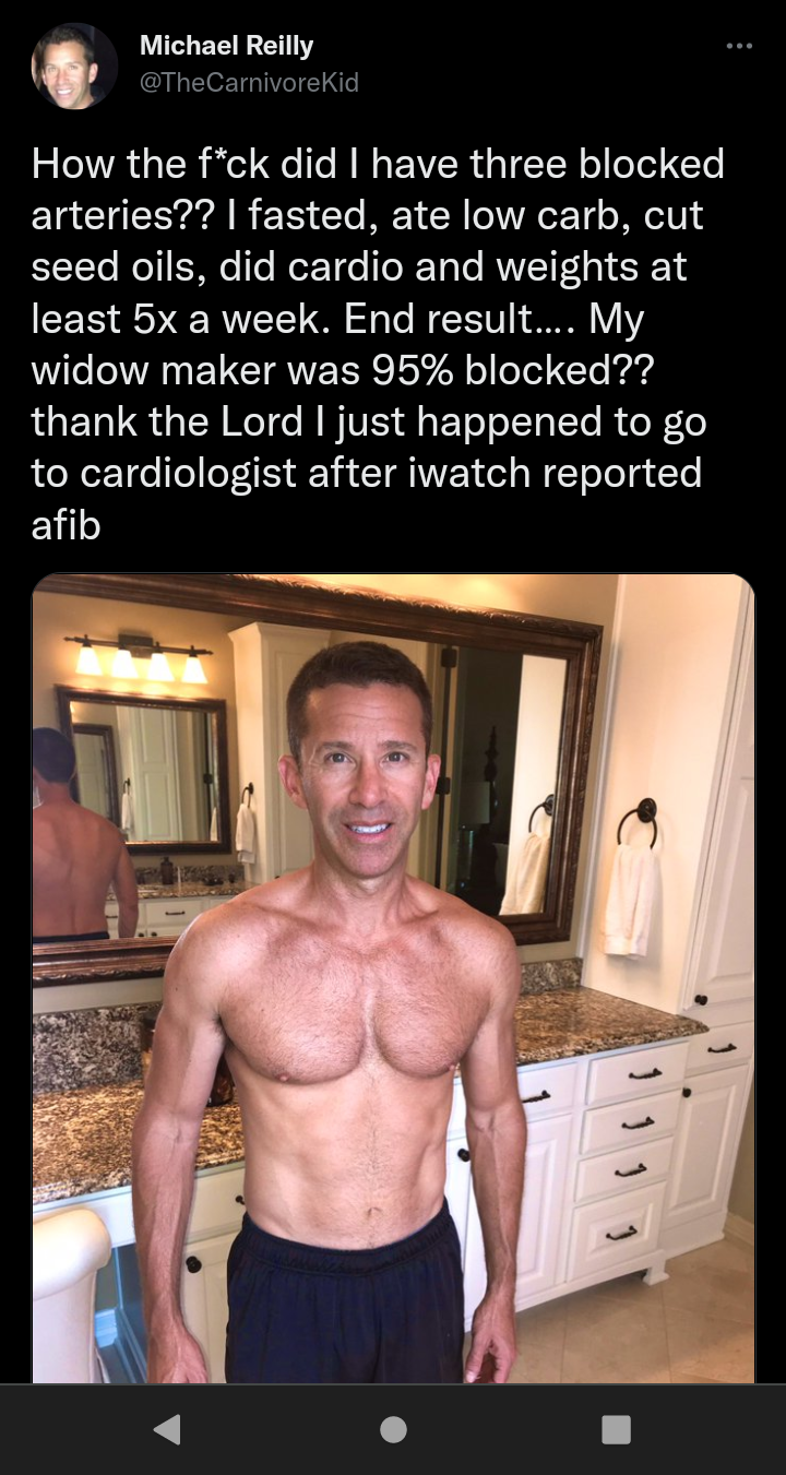 Et j'ai jamais été aussi en forme, j'ai acquis une force musculaire 3x supérieure a avant, avant soulever un pack de 6 bouteilles d'eau j'avais du mal, maintenant je pourrais en prendre 2 sans broncher...Il connait rien de la nutrition, manger des huiles végétales et oléagineux alors que c'est ça qui créer des maladies cardiaque