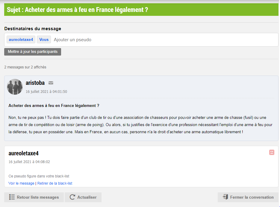 Et là, je reçois des messages privés d'un certain aristoba, c'est son pseudo sur ce site.