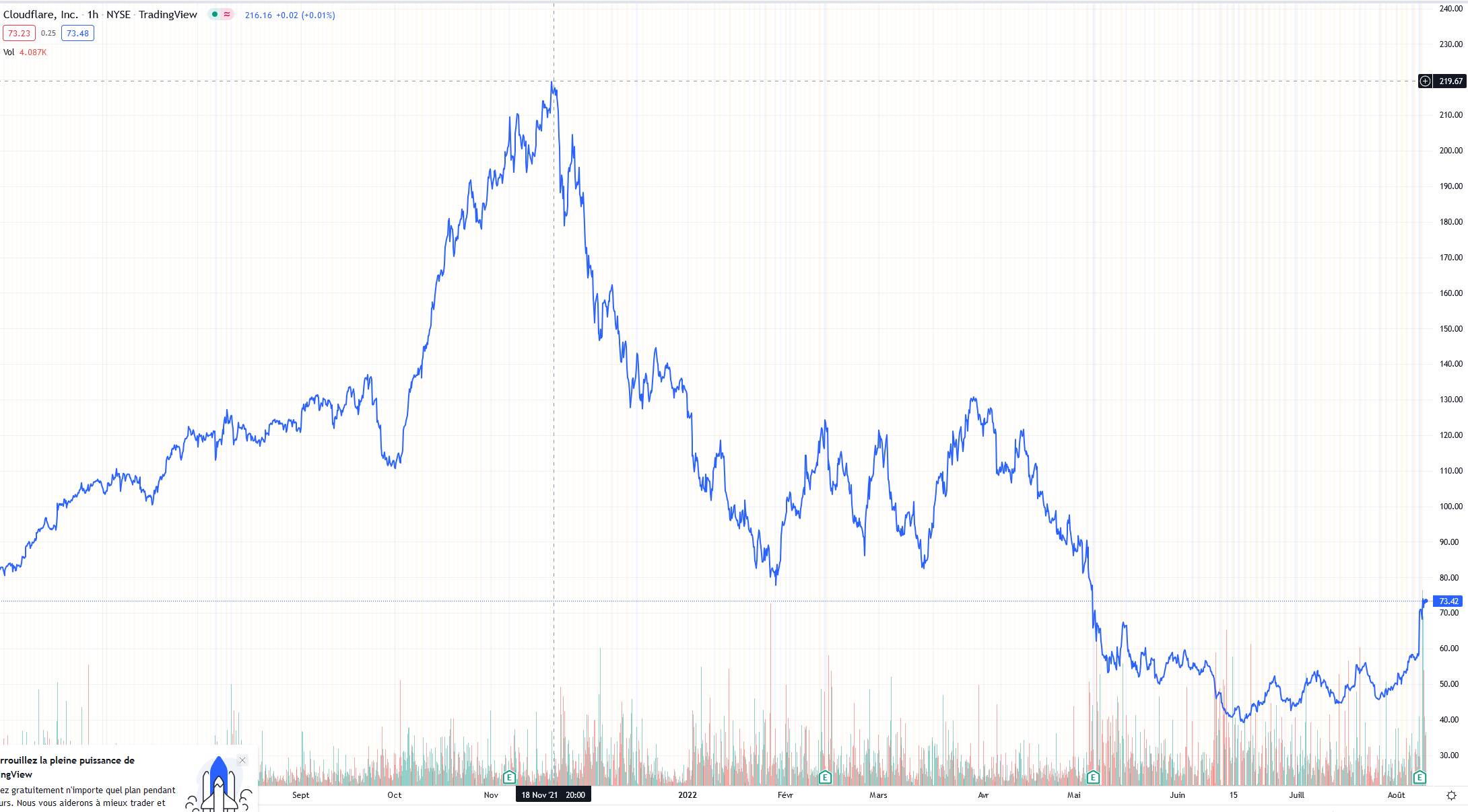 Le top de l'action aura lieu la semaine qui suit, l'action aura fait -70% depuis :
