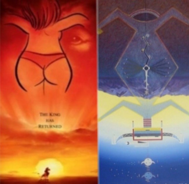 Si vous regardez à quoi correspond cette zone dans l'affiche du roi lion, c'est justement où est inscrit "the king has returned".