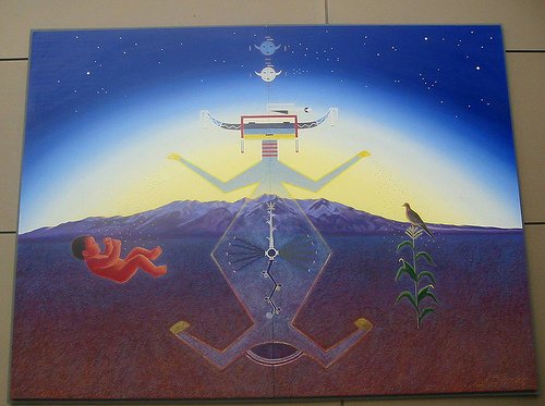 Et dans Le tableau de Denver, la petite tête en bas qui est l'ombre de celle juste au-dessus.Justement les Georgia Guidestones qui sont édifiées à l'entrée de l'aéroport de Denver, on été abattu avec un bulldozer il y a quelques semaines