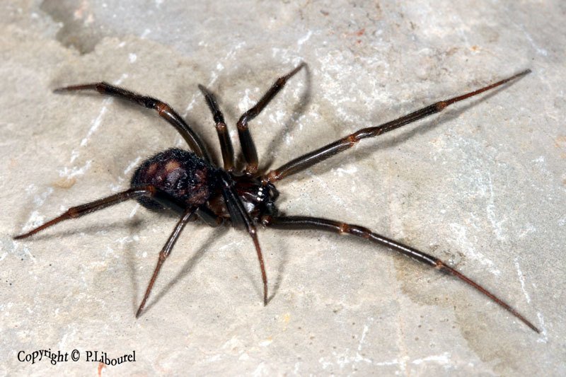 Qqun sait qu'elle est l espèce fr noir vif lisse et brillant.elles fond max 5cm avec les pattes. J'ai ai dans un recoin de grenier leur nid est profond et forme un tube. Elles les seules qui me font flipper :/les veuves noir je crois , mais certain