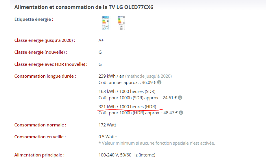 Quasiment tous les monitors de PC sont en classe G, ça consomme de fou![]()