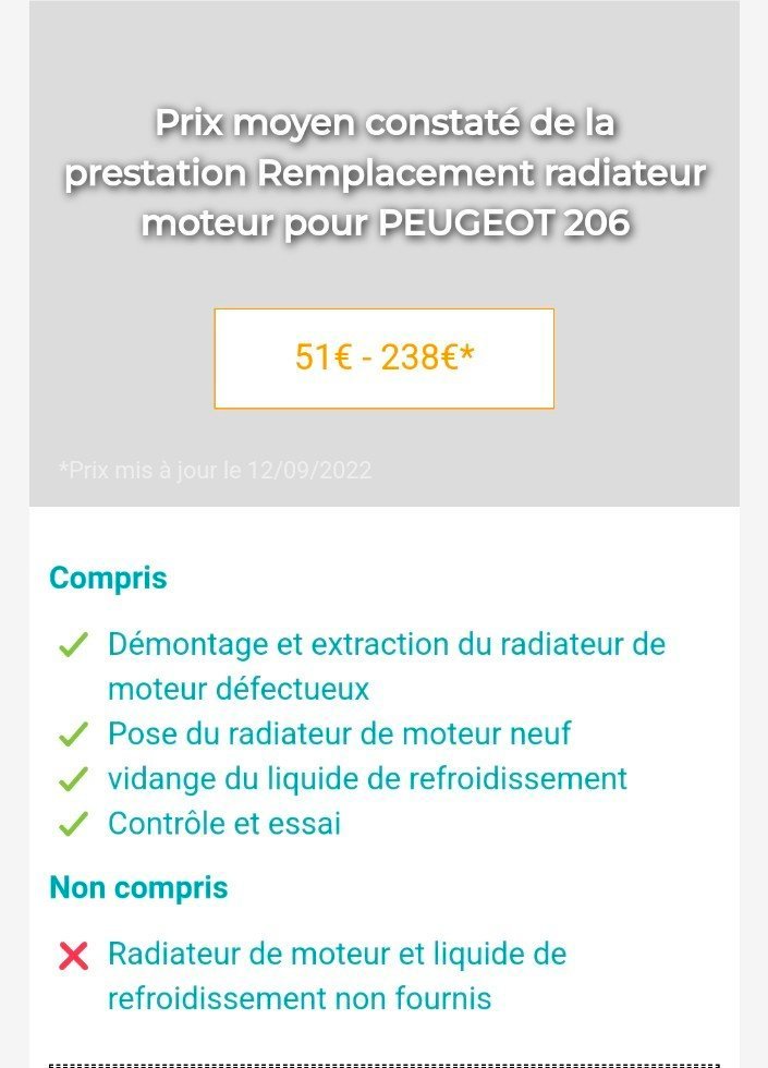 Il existe des produits qui colmatent les fuites donc renseigne toi, sinon go casse pour récup un radiateur d'occas, les 206 ça manque pas