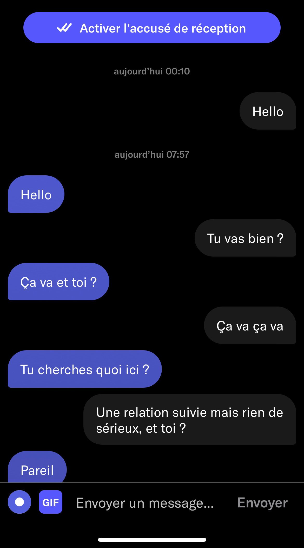 Je modifierai le titre dans ce cas et je mettrai " ma conversation Tinder /10 ? "