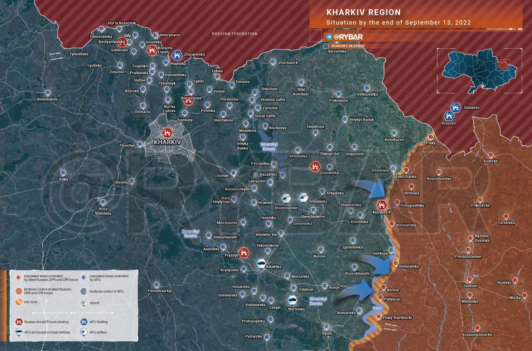 Ayaaa la carte qui a 4 jours de retardsLe "chaudron" s'est fait pulvériser, toute la partie sud avec Izioum à été prise par l'Ukraine