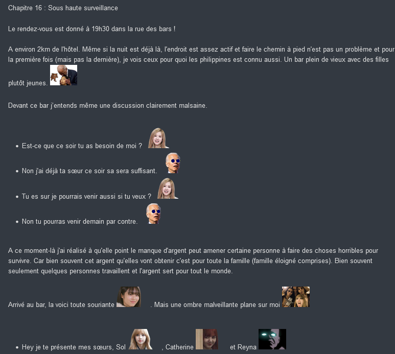 J'ai oublié de prendre la suite que j'ai écrite sur le PC de mon boulot !