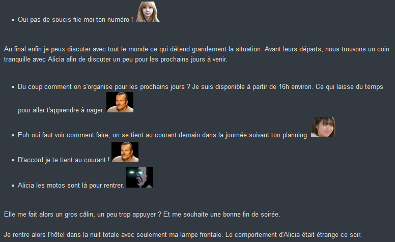 Oui ça parait assez évident comme cela pour Alicia. Mais je souhaitais avoir une discussion avec elle en tête à tête car par message c'était clairement impossible.