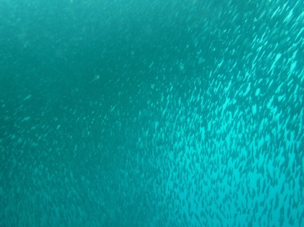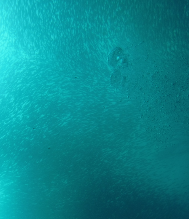La plongée était vraiment impressionnante. Le banc de sardine est vraiment compact et interminable. Une énorme masse noire au-dessus de ma tête. Voici quelques photos, d’une partie moins dense et donc permet d'avoir un peu de lumière pour des photos.
