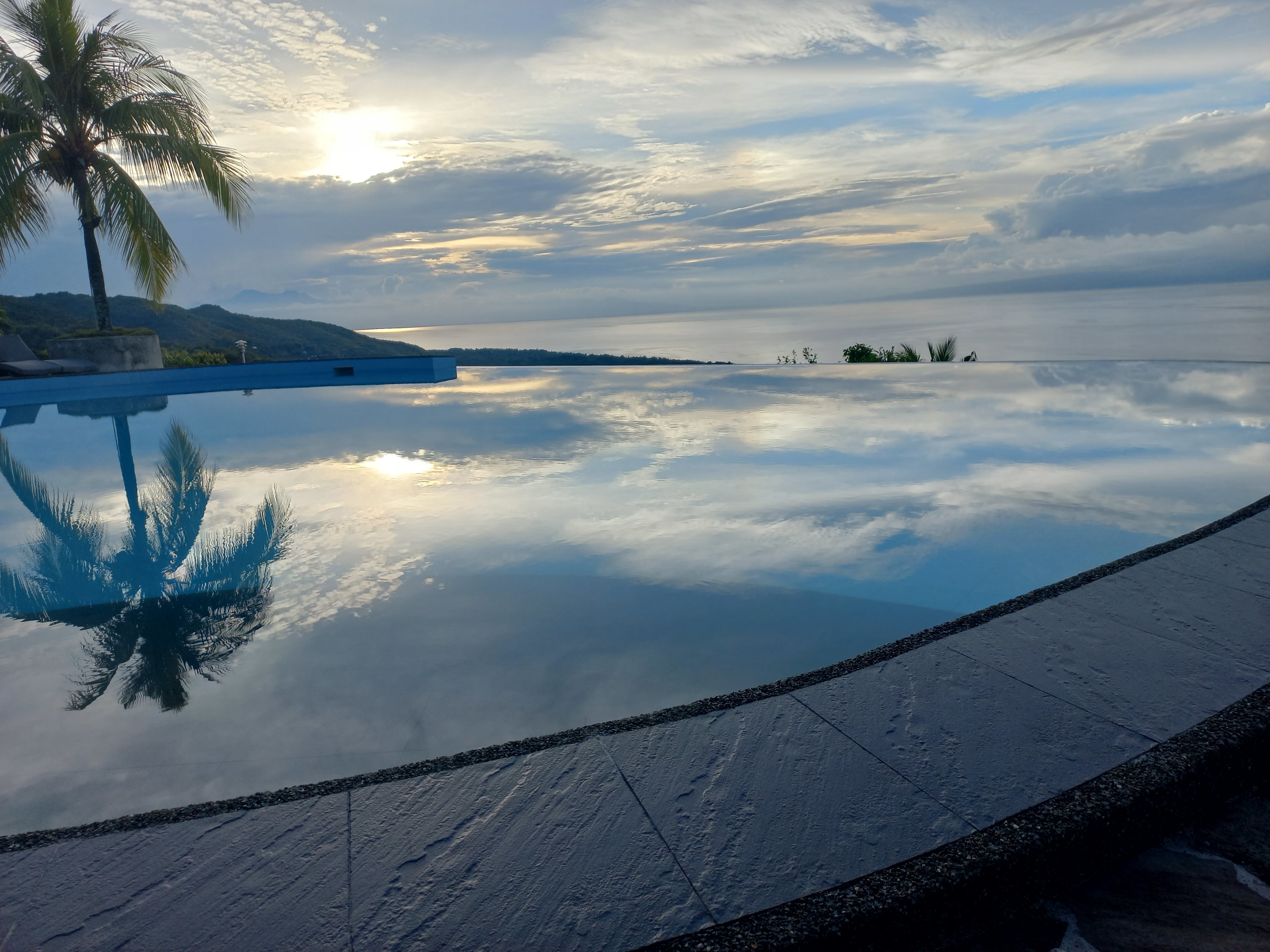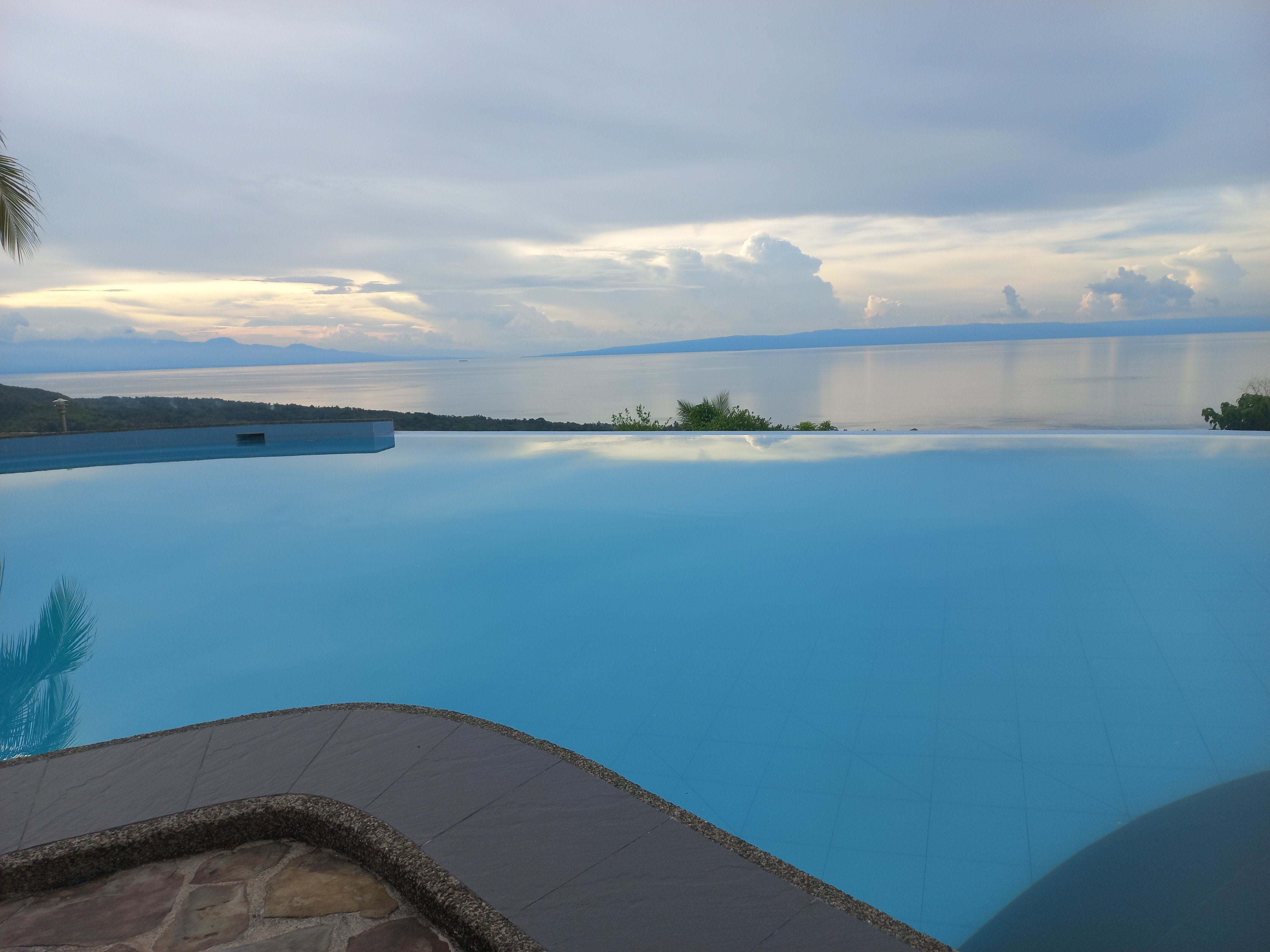 Puis vint le moment le plus paisible de mon voyage seul dans la piscine a débordement avec une vue superbe et calme reposant.