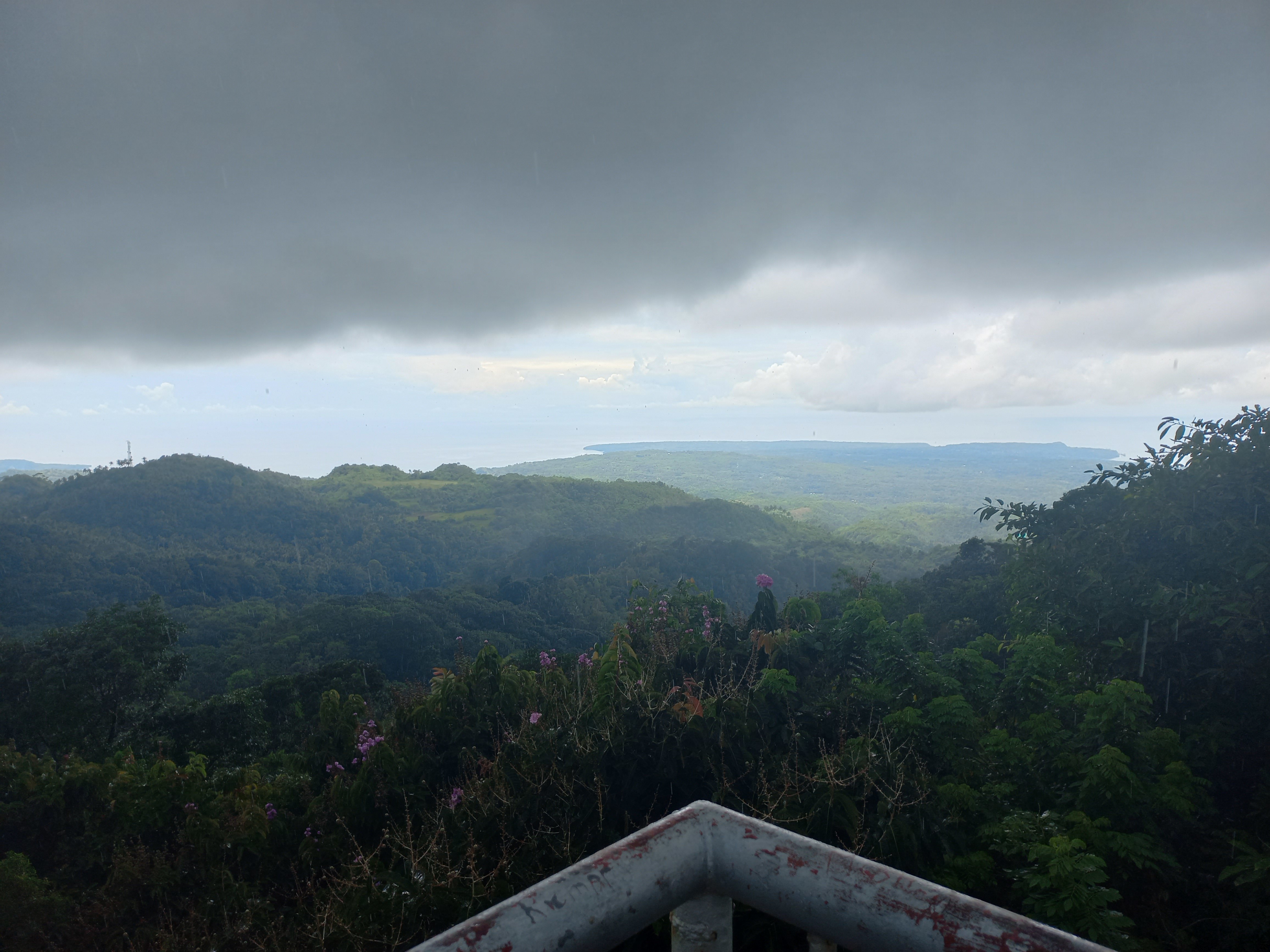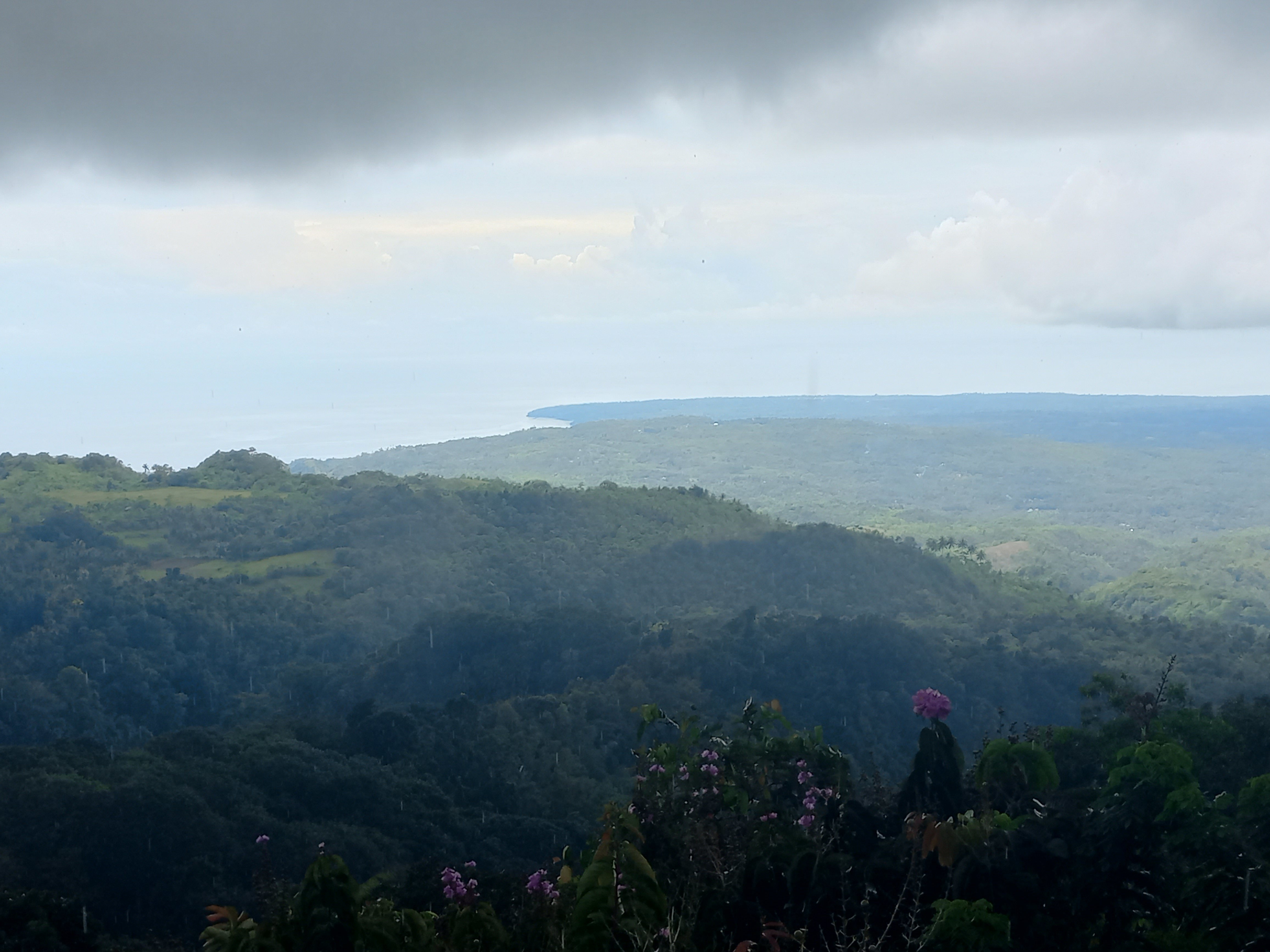 1h plus tard l'averse s'arrête et c'est le temps d'essayer de redescendre pour trouver un centre de plongé pour cet après-midi ou demain matin sur des routes aléatoires encore et trempées