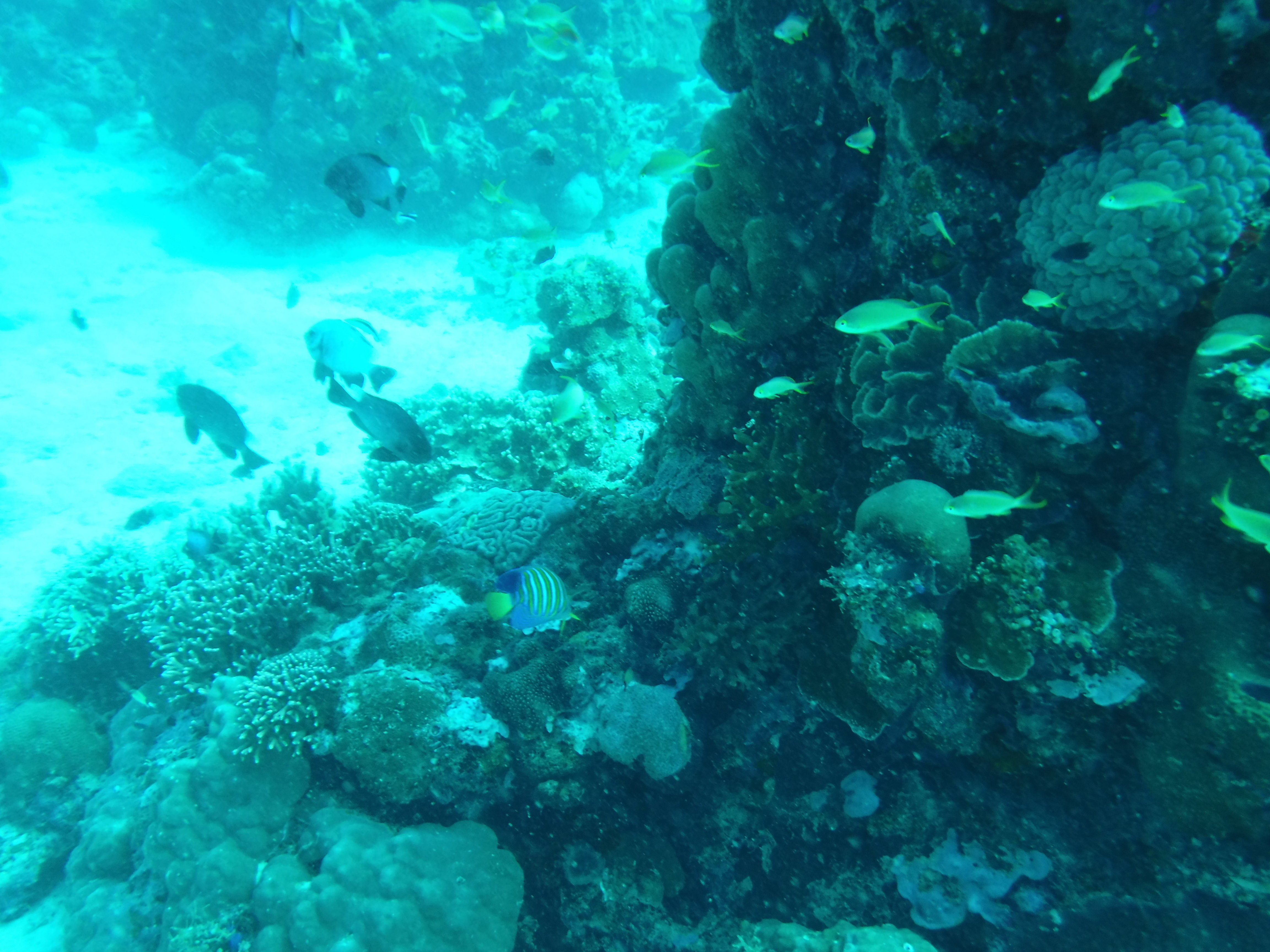. Pourtant c'est le même matériel que lors de mes dernières plongées. Au moins j’applique directement les bonnes techniques pour corriger cela sous l'eau. Mais je continue à avoir de la buée ce qui gâche un peu le moment en plus que le lieu n’est pas non plus extraordinaire.