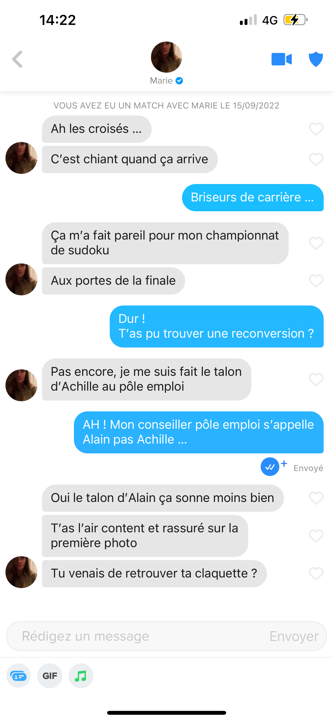 Je vais au sport, je taffe un peu et on reprend ça ce soir quand les Appolines seront sur l’appli