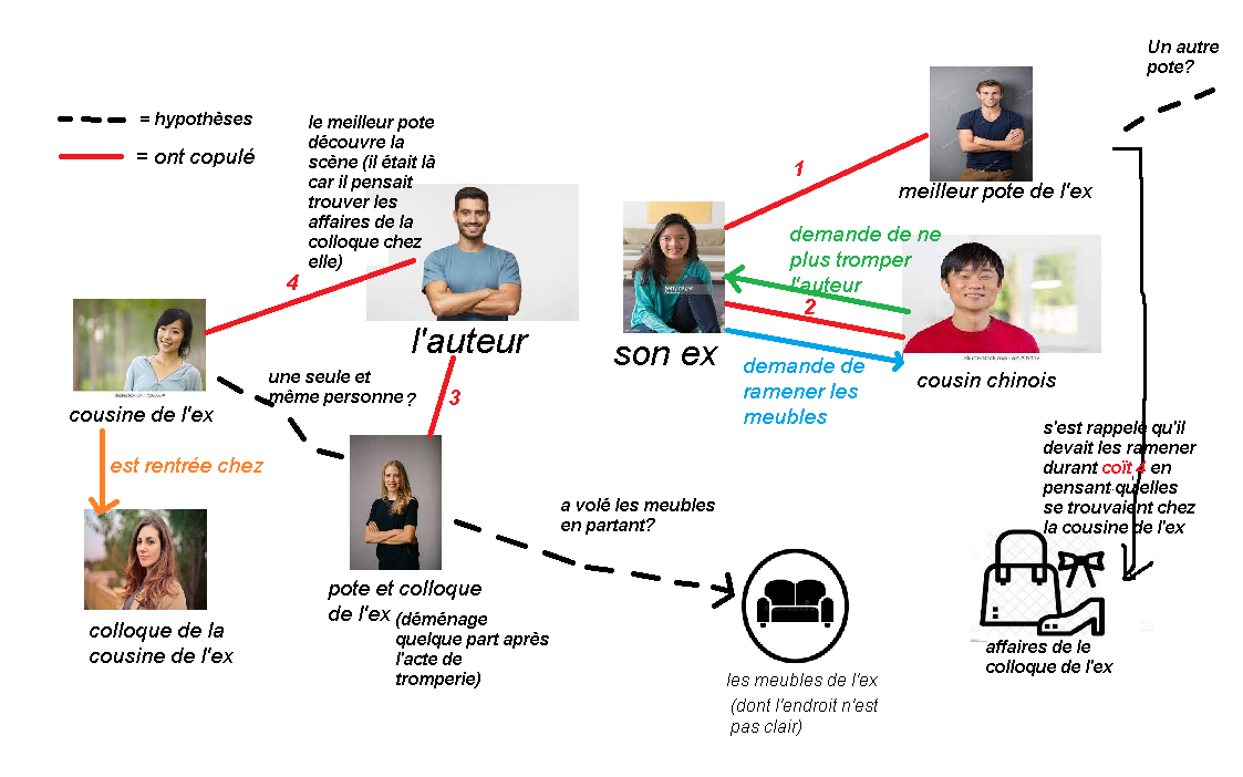 donc ça c'était il y a 3 semaines. aujourd'hui j'apprends que le soir ou j'ai baisé sa cousine, son pote avait oublié de ramener les affaires de la colloque qui étaient soit disant chez la cousine